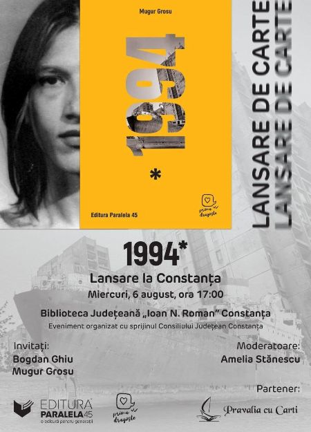 Constănțeanul Mugur Grosu își va lansa la Biblioteca Județeană „Ioan N. Roman” din orașul natal microromanul „1994”.