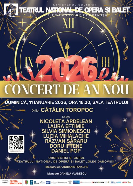 Melomanii tomitani sunt așteptați în sala de spectacole a Teatrului Național de Operă și Balet „Oleg Danovski” pentru a întâmpina cu optimism un nou început, prin participarea la Concertul de Anul Nou, primul eveniment muzical al anului 2026.