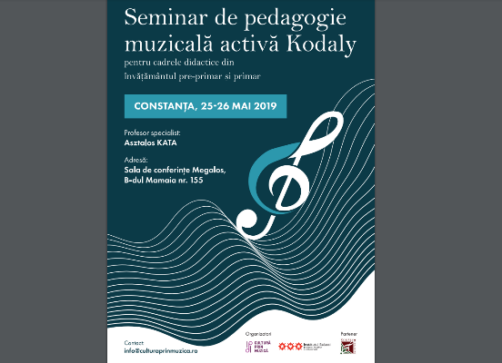 Asociația Cultură prin Muzică, în parteneriat cu Institutul Balassi, Institutul Maghiar din Bucureşti și Institutul Kodály din cadrul Universității de Muzică „Liszt Ferenc“din Budapesta, organizează la Constanța, în perioada 25-26 mai, Seminarul de pedagogie muzicală activă Kodály pentru cadrele didactice din învățământul pre-primar și primar.