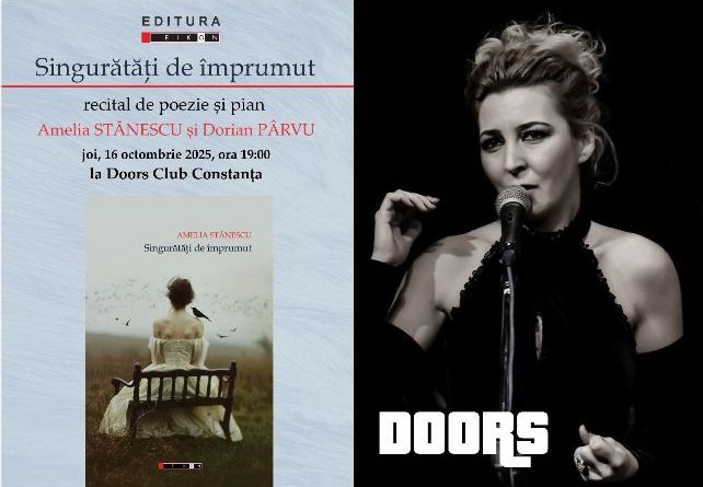 „Singurătăți de împrumut”, cel mai nou volum de poezie semnat de Amelia Stănescu, va ajunge în această joi în Clubul Doors.